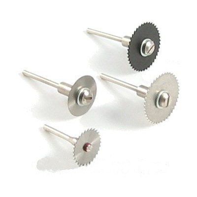 4 Sets of Circular Saw Blades with Arbors Circular Saw Blade with Arbor This item is perfect for cutting fiber glass, plastic, wood, and more The blade measures 1 1/4" diameter, 0.8mm thickness and has 40 teeth Arbor size is 1/4" This item is ideal for craftsmen, jewelers, technicians, archeologist, etc Circular Black Saw Blade with Arbor This item is perfect for cutting fiber glass, plastic, wood, and more The blade measures 1 1/4" diameter, 0.8mm thickness and has 40 teeth Arbor size is 1/4" This item is ideal for craftsmen, jewelers, technicians, archeologist, etc. Circular Saw Blade (M2 Class) with Arbor This high speed saw blade measures 1" and fits any standard 1/4" arbor This high speed saw bade is made from M2 class steel for speed and strength This high speed saw blade's thickness is 0.2mm and teeth-count is 130 This high speed saw blade is perfect for cutting fiber glass, plastic, wood, and more This high speed saw blade is ideal for craftsmen, jewelers, technicians, archeologist, etc A mandrel is included (as shown on the first picture) Circular Saw Blade with Arbor This item is perfect for cutting fiber glass, plastic, wood, and more The blade measures 25mm diameter, and has 32 teeth This item is ideal for craftsmen, jewelers, technicians, archeologist, etc. WARNING: This mandrel and or cut-off wheel is designed to be used on power tools which are being operated at low R.P.M.. Please operate your power tool at low R.P.M. to avoid personal bodily injury and or damage to the mandrel or cut-off wheel. Always wear protective clothing/gear while operating power tools. Using hand tools can be dangerous, always take care and keep away from children. Wear protective eyewear in working area at all times. Select correct type and size of hand tools for work. NOTE: Pictures are for illustration purpose only, actual item may slightly vary in appearance and design
